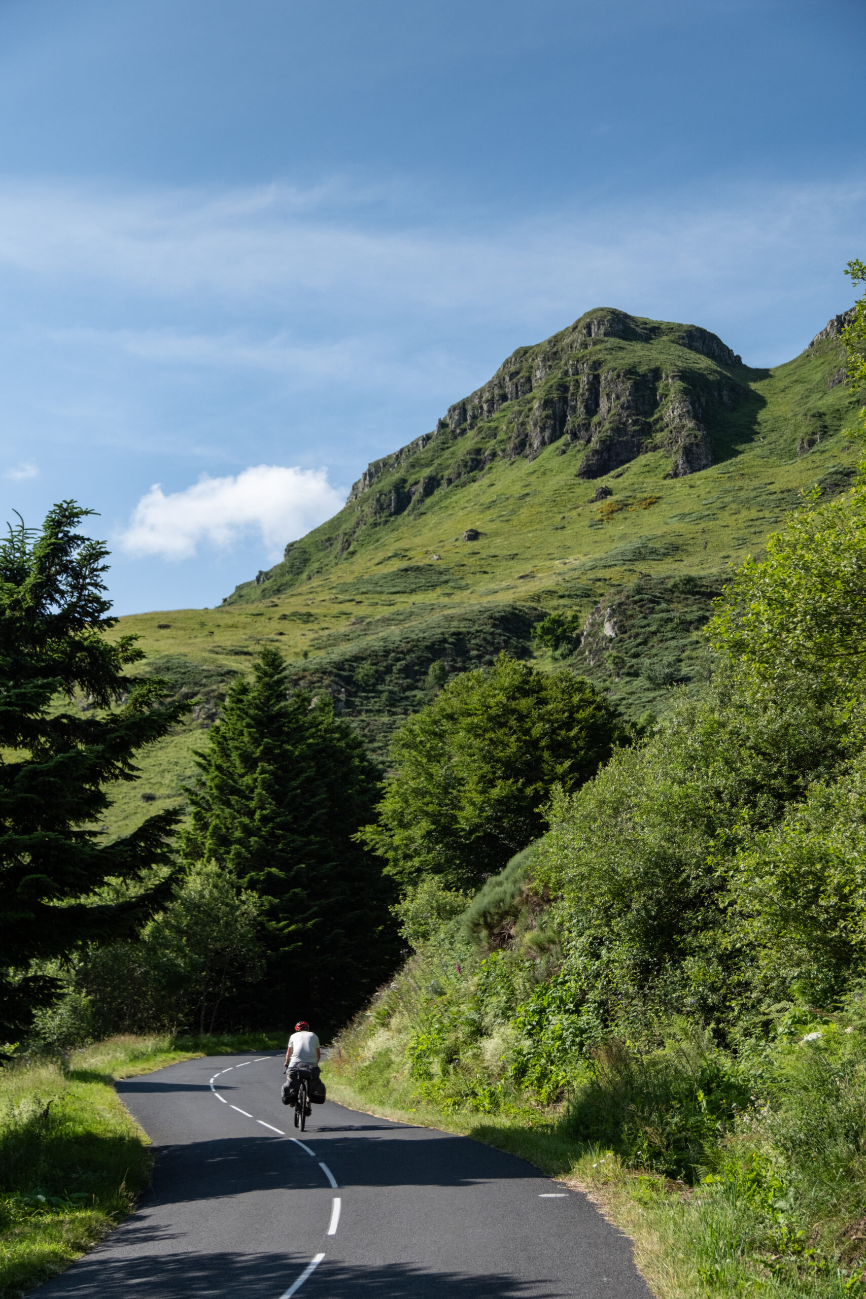 Pour autant, la GT2V sait rappeler aux cyclotouristes qui l’empruntent que l’itinérance à vélo est tout sauf un long fleuve tranquille. En effet, la montée vers le Col de Baladour depuis les faubourgs d’Allanche recentre le voyage sur l’effort.