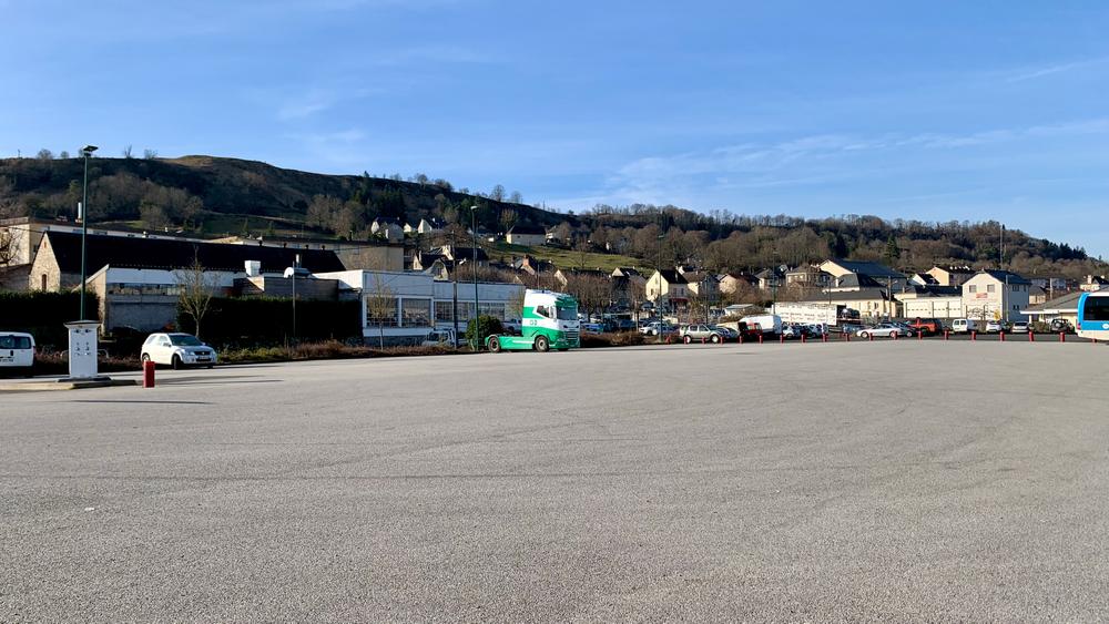 Aire de service pour camping car, stationnement illimité, proche des supermarchés.