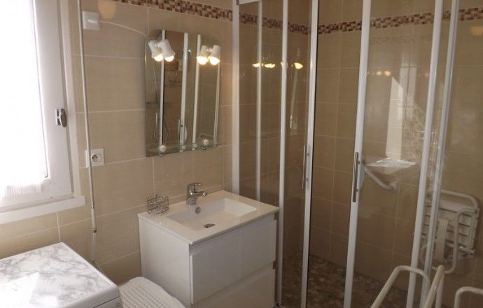 1 chambre avec un lit 160 (2X80), 1 chambre avec 2 lits 1 personne, salle d'eau avec douche spacieuse (80X160cm), WC indépendant.
