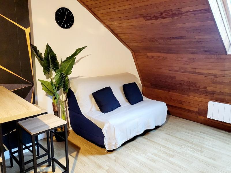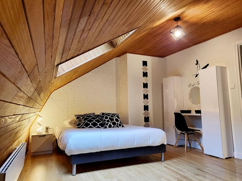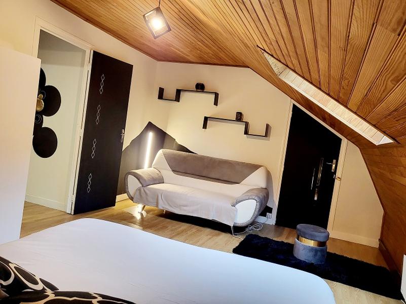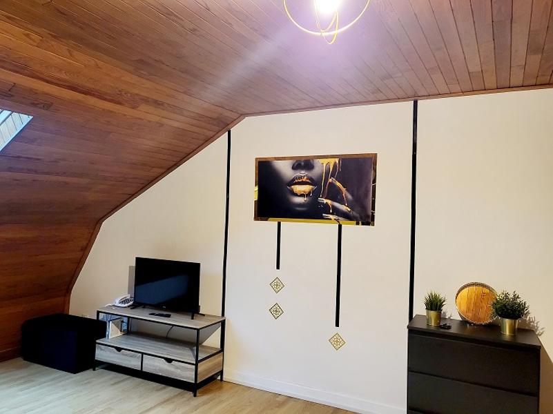 Composé d'une grande chambre avec un lit 160*40, d'une salle de douche, d'une cuisine équipée, d'un salon avec BZ pour un couchage 2 personnes supplémentaires. Draps et serviettes fournies. Ménage obligatoire.