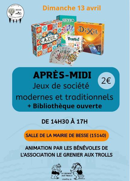 Le comité des fêtes de Besse et le Grenier aux Trolls vous proposent des après-midis jeux de société chaque 2ème dimanche du mois…