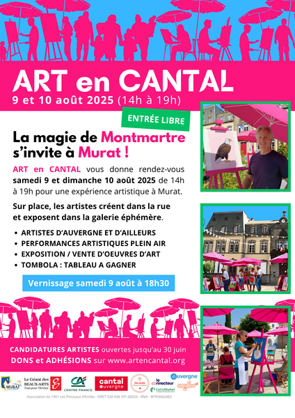 ART en CANTAL donne rendez-vous les samedi 9 et dimanche 10 août 2025 pour une expérience unique à Murat.