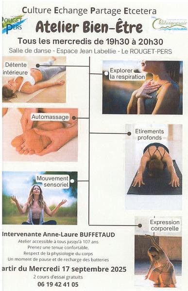 Du 17/09/2025 au 24/06/2026 le mercredi de 19h30 à 20h30.