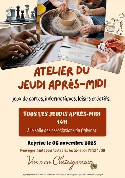 Du 20/11/2025 au 25/06/2026 le jeudi à partir de 14h.
