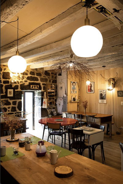 Marc, cuisinier depuis 25 ans accommode avec passion les produits de saison. Il propose une cuisine locale des montagnes d’ici et d’ailleurs, des plats faits maison et de qualité adaptés à vos envies et régimes. Venez déguster sa cuisine généreuse et gourmande dans cet écrin de verdure et de nature à 870m d’altitude, en terrasse, vue sur les collines ou près du feu quand la neige arrive. L’auberge, tel un refuge au pied des montagnes du Cantal, est un lieu chaleureux et convivial au cœur du Parc Naturel Régional des Volcans d’Auvergne. Elle se veut aussi un lieu culturel avec des soirées, conte, conférences, expositions, accompagnement randonnées, ateliers mosaïques et culinaires.