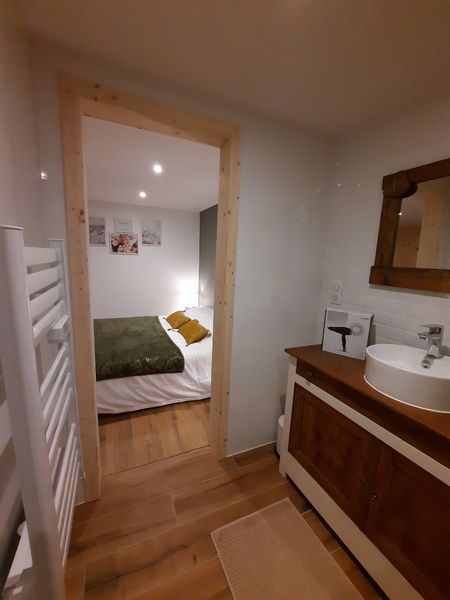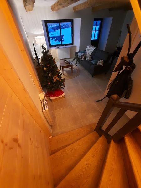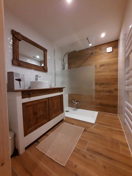 Composé au rez-de-chaussée : un grand séjour avec cuisine/salon, chambre parentale avec sa salle d'eau privative. A l'étage : une chambre avec un lit double, une chambre avec 2 lits superposés et une salle de bain. A chaque étage se trouve des toilettes séparées.