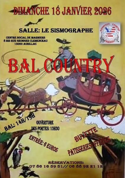 Bal country de 14h à 19h, ouverture des portes à 13h30.