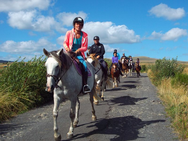 Bousculez tous vos sens le temps d'une balade à cheval! Ecoutez le vent, respirez cette terre, admirez la vue sur les Monts du Cantal en caressant votre monture! Vous êtes en communion avec la nature ! Savourez cet instant de bonheur entre ciel et terre.