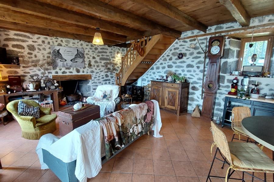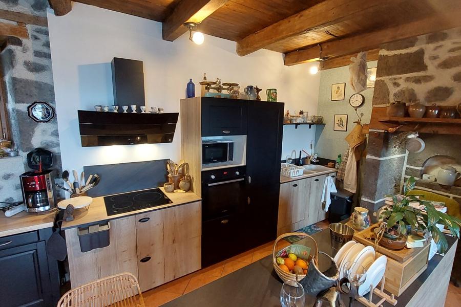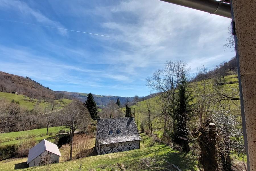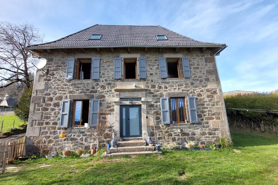 Maison de caractère en pierres apparentes dans village de montagne avec jardin et vue sur les monts du cantal