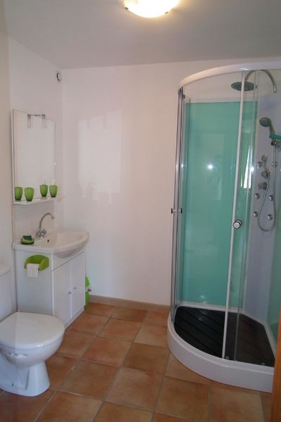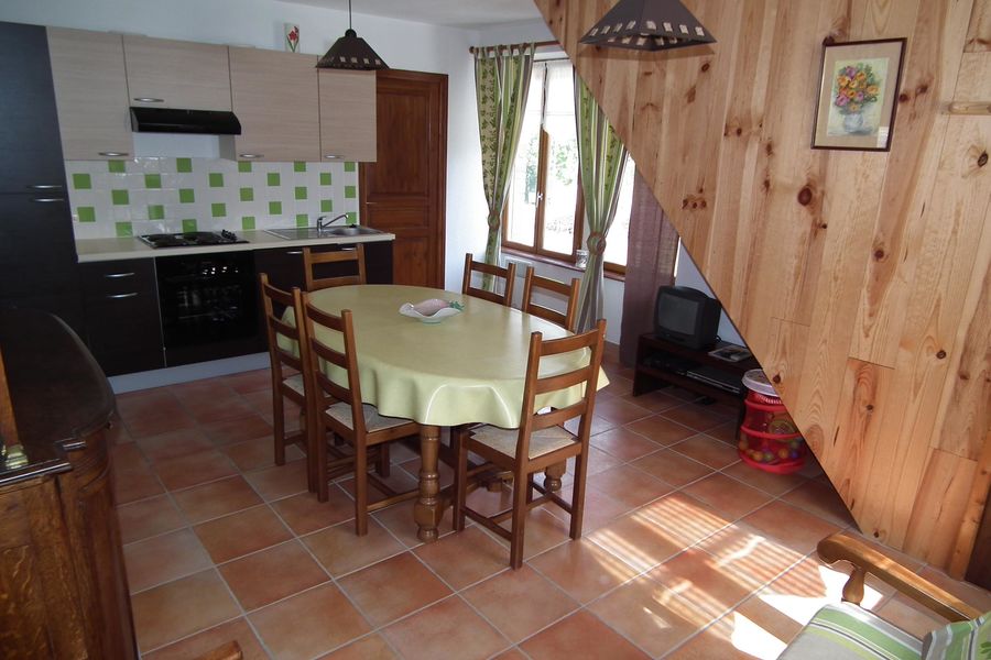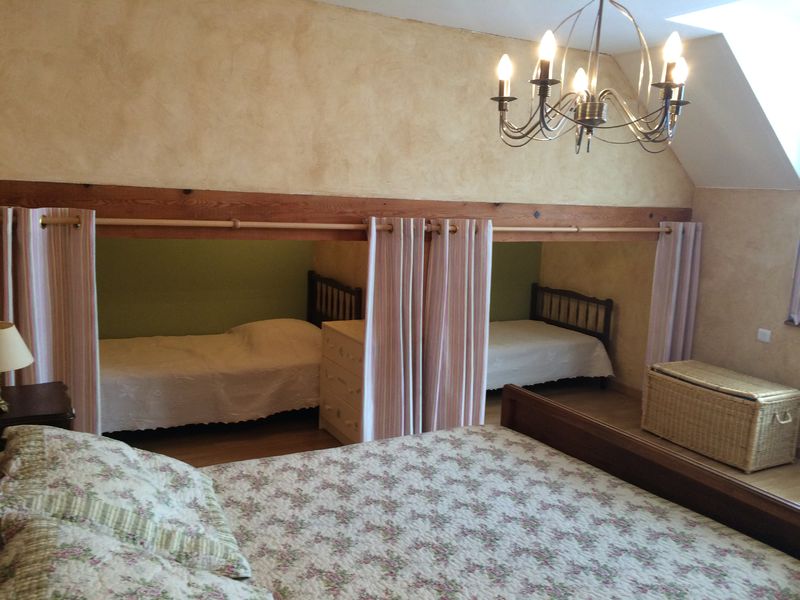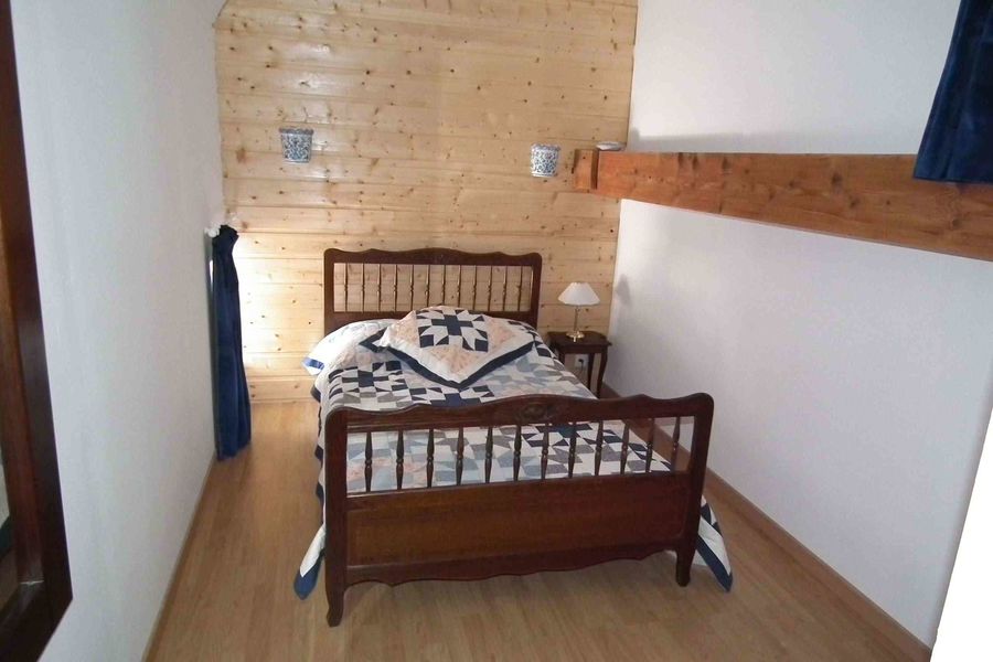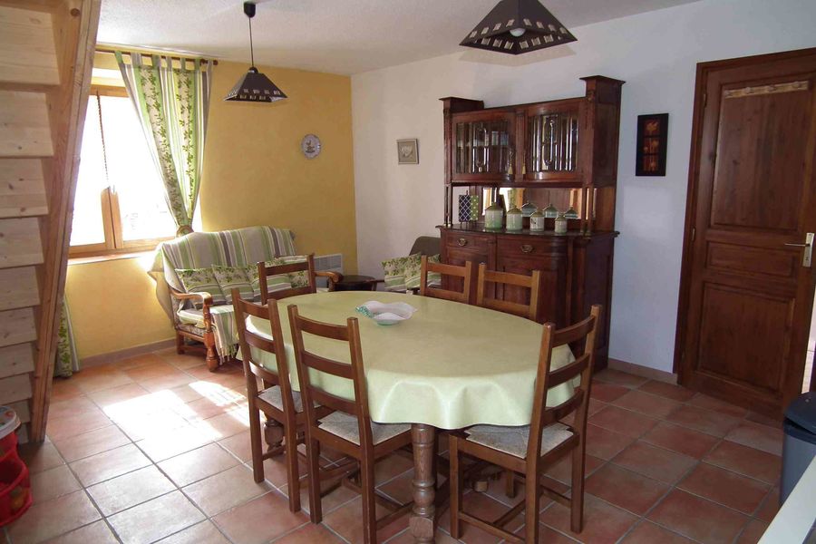 Rez-de-chaussée : pièce de vie comprenant cuisine aménagée, coin repas et salon, salle d'eau et WC. A l'étage : une grande chambre avec un lit de 140 x 190 et deux lits d'une personne dits « alcôves » 90 x 190, une petite chambre équipée d'un lit de 120 x 190. Jardinet et parking privé.