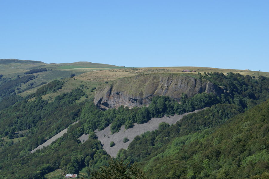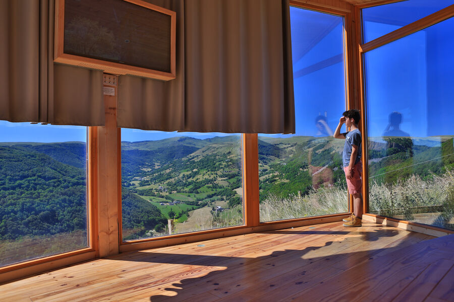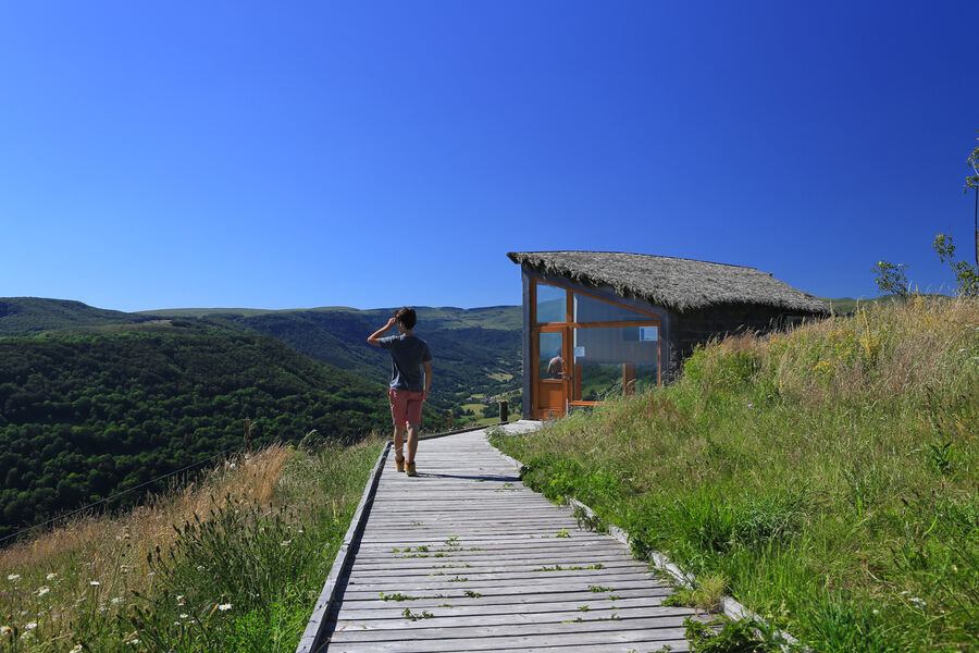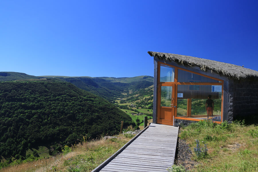 Protégé du vent, ce point de vue offre une vue plongeante sur la magnifique Vallée de Brezons et sur les Monts du Cantal.