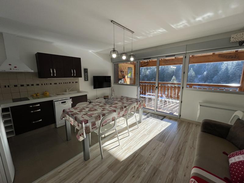 Vue panoramique pour ce spacieux appartement, pistes de ski à 200 m de la résidence, centre station à 800 m. Appartement neuf de grand confort.