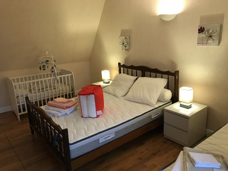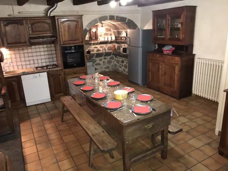 Rez de chaussée : pièce principale avec cuisine et salle à manger (cheminée auvergnate), salon indépendant (tv, lecteur DVD, clic-clac…), salle d’eau et wc indépendant. A l’étage : 3 chambres (2 lits 140, 1 lit 160, 2 lits 90, salle de bain, wc indépendants. Chauffage central fuel et électrique. Equipements de loisirs : jeux de société, balançoire, luges.