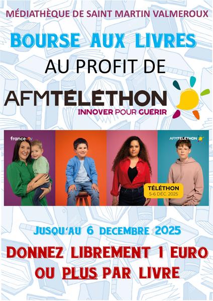 La médiathèque de Saint-Martin-Valmeroux renouvelle son opération bourse aux livres, au profit de l’association AFM Téléthon…