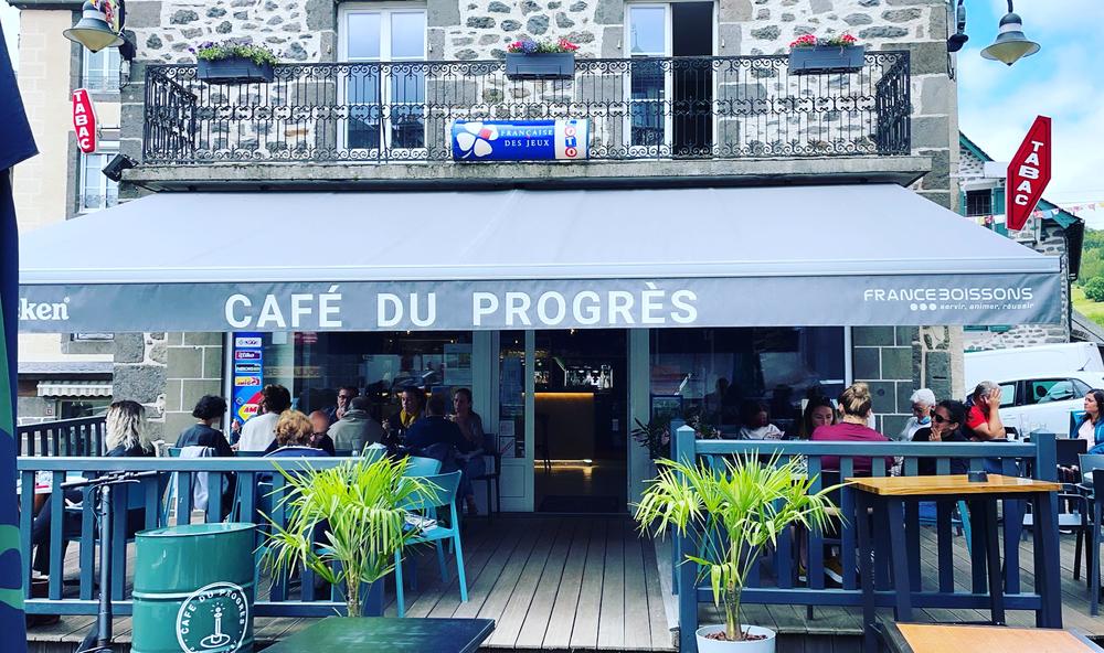 Marlène et Romain vous accueillent toute l'année au Café du Progrès sur la place centrale du village de Pierrefort.