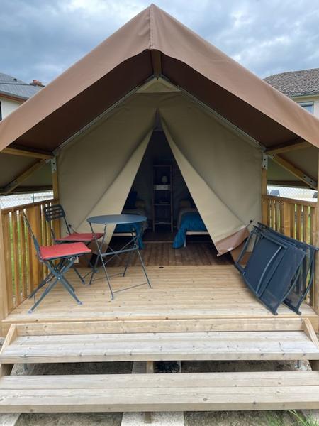 Location tente équipée week-end : de 80 à 90 € (Tente ossature bois
