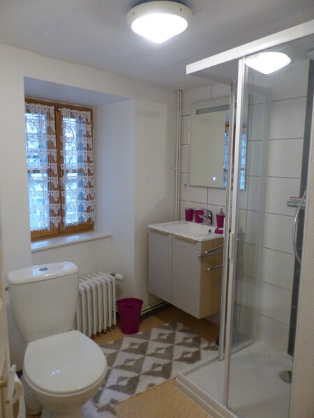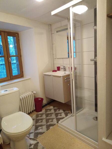 3 / 4 personnes – Maison indépendante ancienne de centre ville – T2 de 40m2 au calme proche commerces et sites culturels dans quartier historique médiéval. Possibilités randonnées, équitation, tennis, pêche, chasse, ski à 30 km, centre aqualudique…1 chambre avec lit 140 – Salon avec convertible – Cuisine – SED/WC – Local fermé pour vélos (2 maximum), skis…Chauffage central. Location de draps possible : 15€/lit.