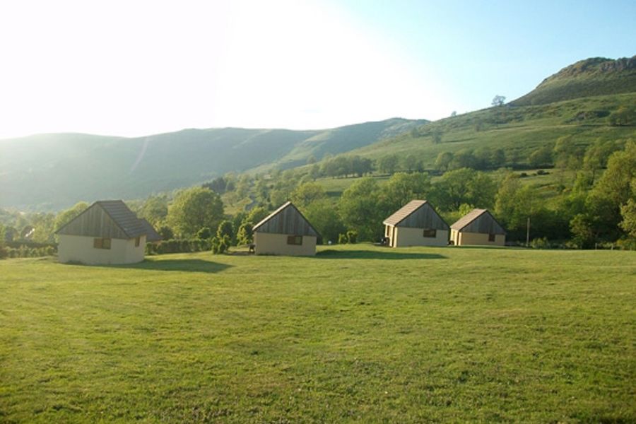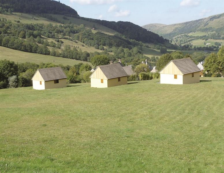 A 1100m d'altitude, hameau de 10 chalets (30m²) au cœur du Cantal. Séjour – coin cuisine (micro-ondes, four, frigo) – canapé – 1 chambre 1 lit 2 personnes – mezzanine – 3 lits 1 personne – SED – chauffage électrique – lave-linge collectif – terrasse – terrain clos – télévision – restaurants sur place