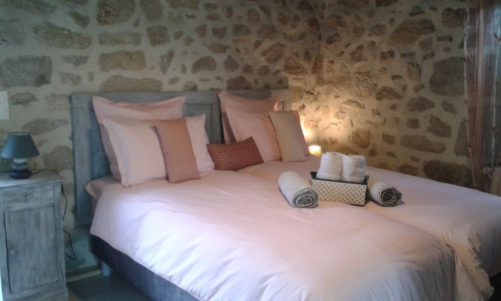 – la chambre CANTOU en rez-de-jardin surélevée avec une petite terrasse. 2 lits 80 X 200 jumelables en 160 X 200, salle d'eau et wc séparés privatifs.