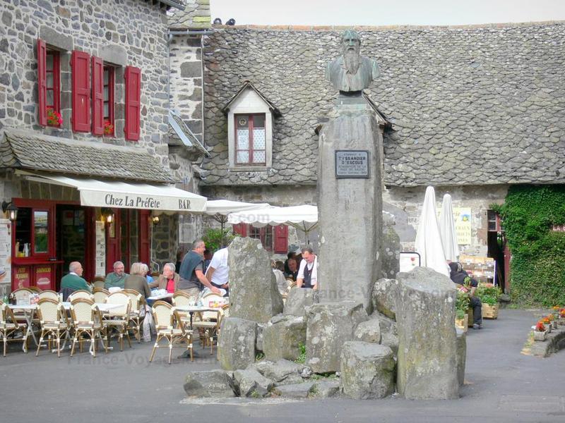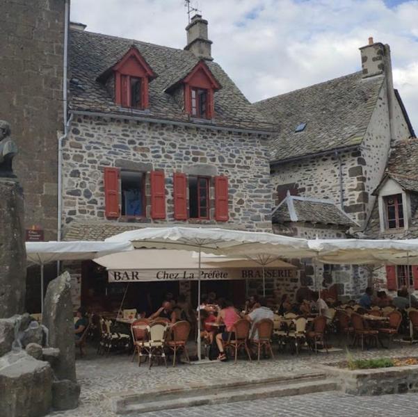 Sur la place principale de Salers, venez passer un moment de détente sur notre terrasse, déguster nos produits régionaux et contempler les maisons à tourelles classées Monuments Historiques.