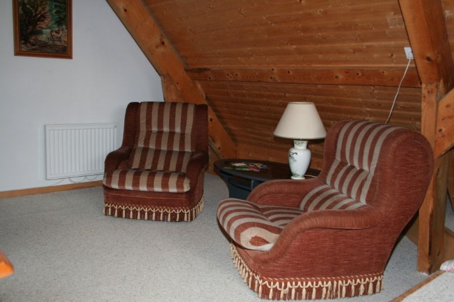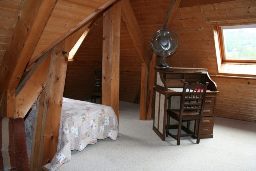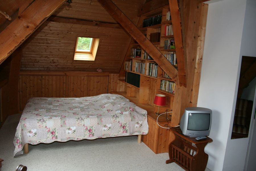 La chambre mansardées et spacieuses est située au 1 er étage de la maison construite sur un rocher avec vue sur le cirque de Mamou. Accueil chaleureux. Altitude 680 m – Aurillac à 5 km. Piscine au sel. TV