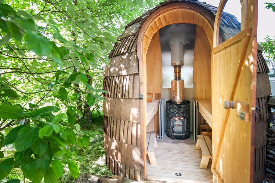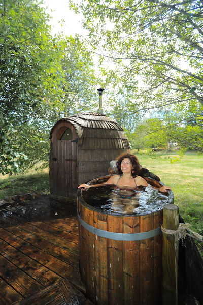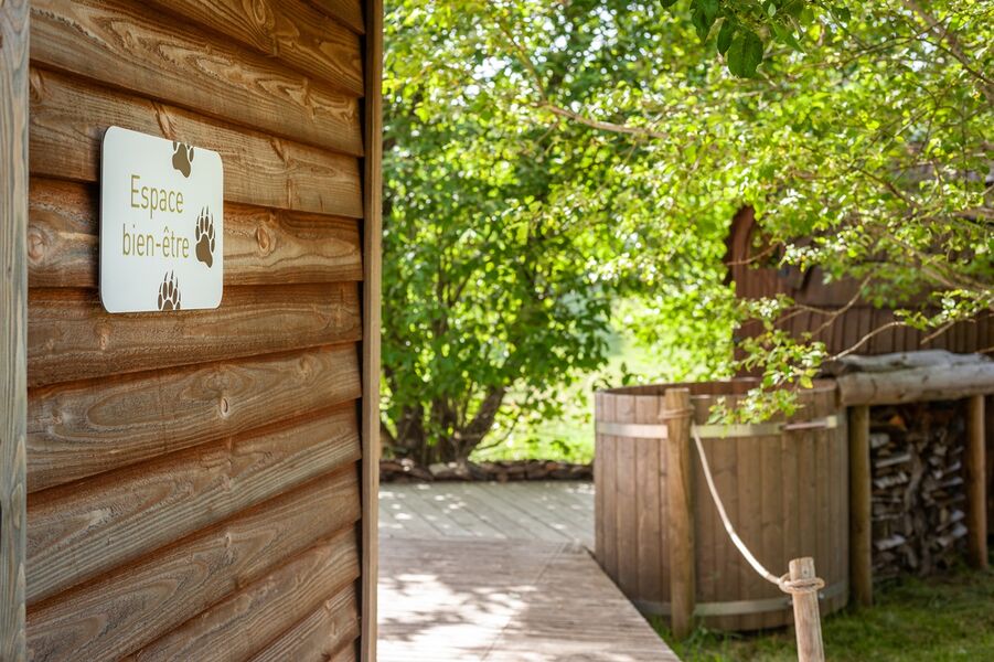 Espace bien-être : bain finlandais, sauna bois (40 €/h en duo) ouvert au public sur réservation.