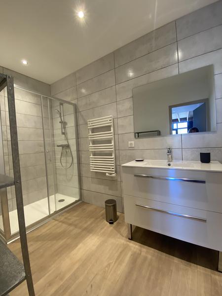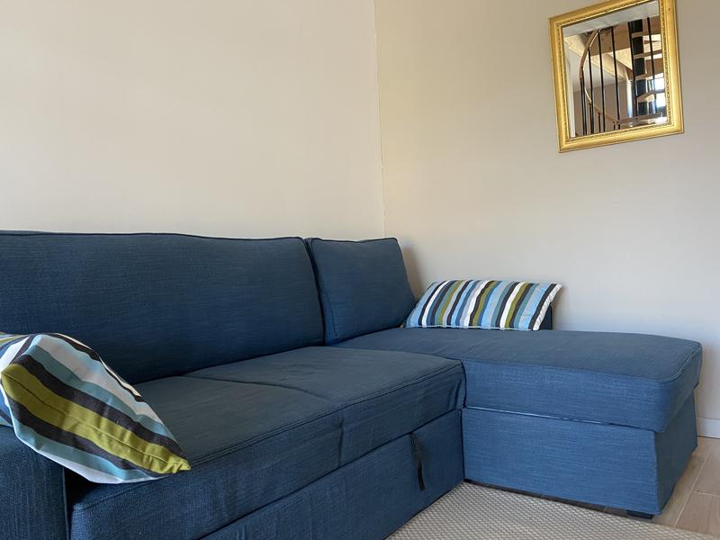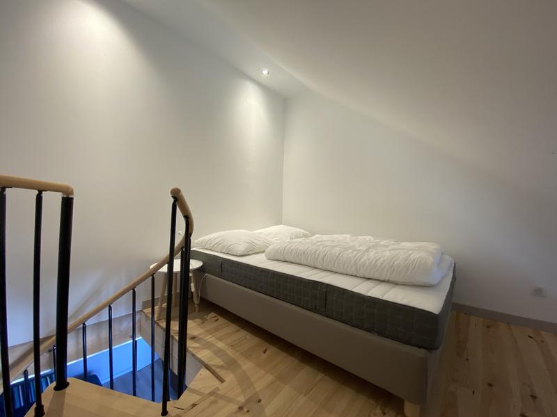 Vous trouverez dans le coin-couchage en mezzanine (accès par escalier colimaçon) 1 lit 2 personnes en 140×200. Le chauffage est central au gaz. Vous aurez l'accès à une buanderie commune avec lave-linge.