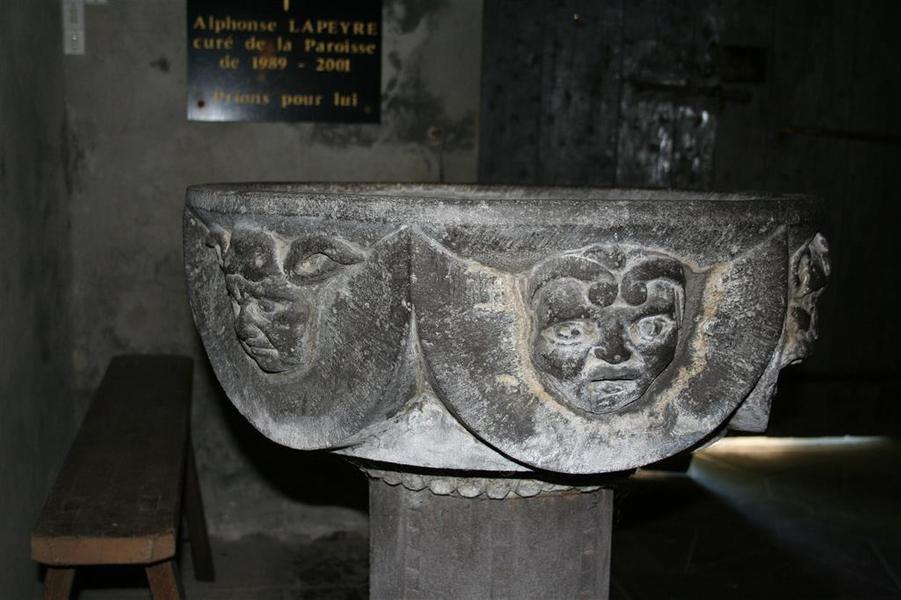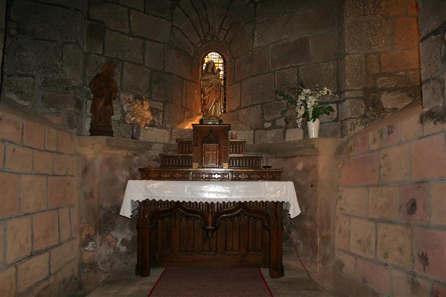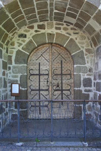 Chœur et abside de style roman.Porte à pentures et fer forgé et petites têtes qui terminent les volutes. Chevet à modillons.