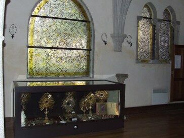 Exposition aménagée dans la salle capitulaire (classée au titre des monuments historiques) de l'ancien monastère attenant à l'abbatiale, cadre incomparable. Deux meubles anciens et deux vitrines recèlent calices, ciboires, ostensoirs et autres reliquaires.