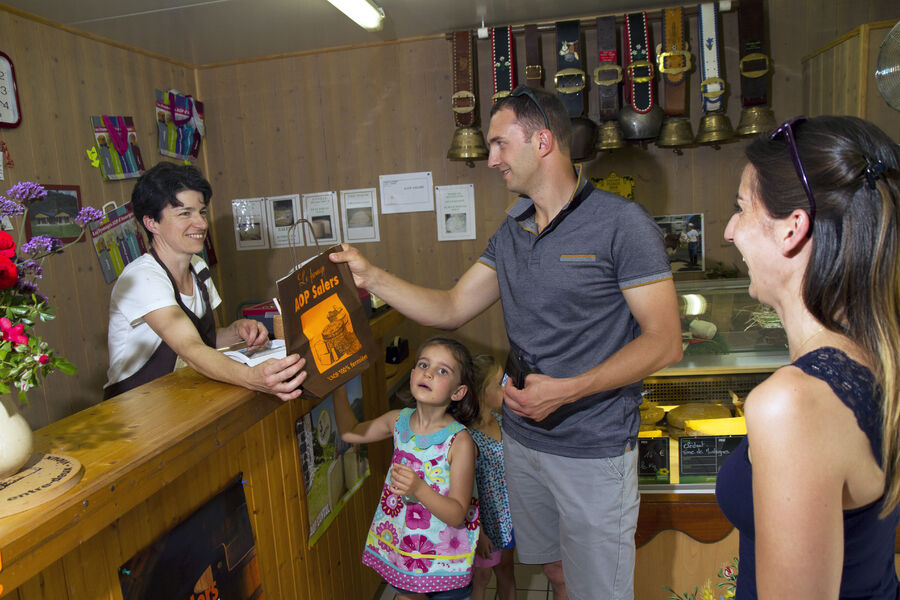 Fabrication et vente de fromage : Salers AOP, Cantal AOP, Tome de montagne ainsi que charcuterie fermière produite à base de porcs nourris au petit lait : terrines, saucissons, jambons.