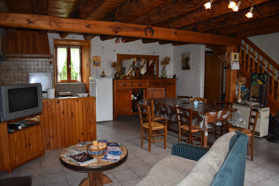 3 chambres – 2 grands lits – 2 petits lits – 1 Lit bébé – Cuisine – salle à manger – salle de séjour – Micro-ondes – Réfrigérateur avec compartiment congélateur – Salle d'eau douche / WC – 1 wc indépendant – Chauffage électrique + insert (Consommation en plus hors juillet et août) – Lecteur DVD – Bains de soleil – Parasol. Draps et linge de maison sur demande. Possibilité de 2 couchages supplémentaires dans pièce sous les combles.