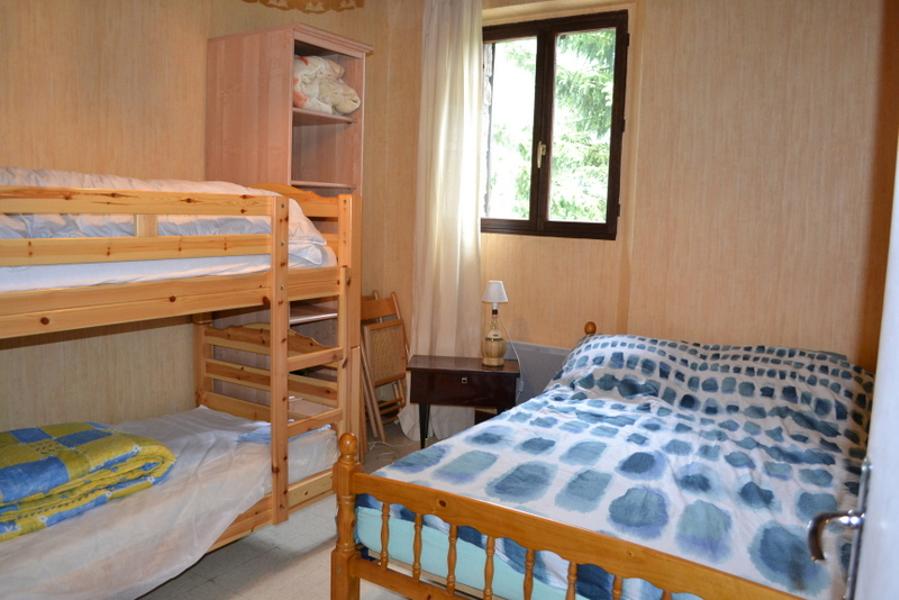 Chalet familial, au rez-de-chaussée : chambre 1 : 1 lit de 140, armoire, chambre 2 : 1 lit de 140 et armoire, chambre 3 : 1 lit de 140 + 2 de 90 superposés, 1 salles de bain, 1 wc séparé, 1 séjour avec clic-clac + canapé fixe, fauteuils, télévision, Wifi gratuite- grande table , 1 réfrigérateur.