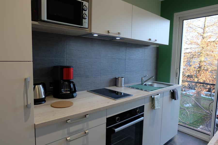 Il comprend : une cuisine et une salle de bain refaites à neuf fin 2022, une grande chambre, salon et buanderie. Cuisine entièrement équipée (four, frigo – freezer, plaques électriques, lave-vaisselle et petit électro-ménager) ; salle de bain avec grande cabine de douche et vasque sur meuble et toilettes. Chambre avec lit en 140, BZ transformable en lit et TV. Draps et linge de toilette fournis.
