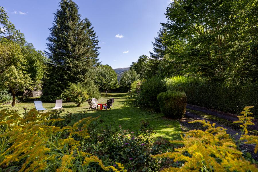 Vous bénéficiez d'un parc arboré de 2000 m² avec salon de jardin et chaises longues.