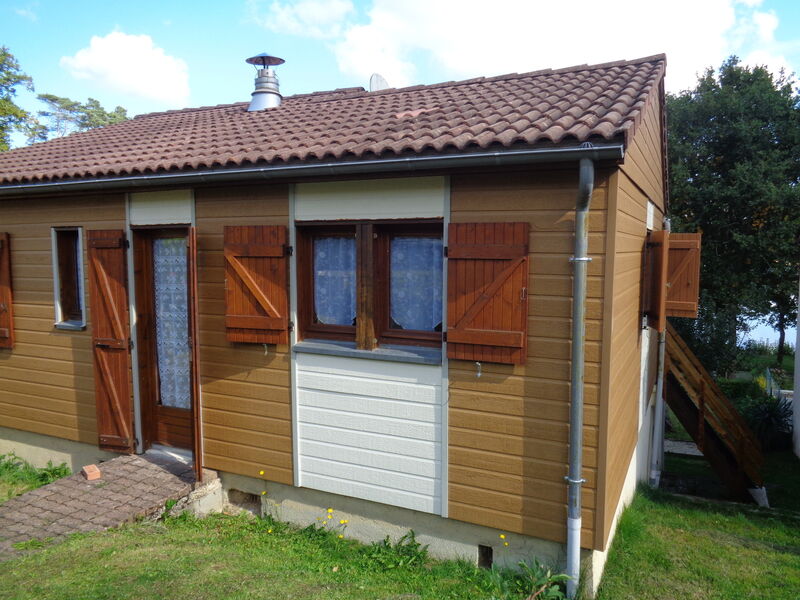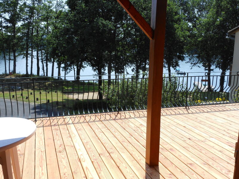 Chalet entrée plain-pied. Grande terrasse avec pergola surplombant la plage du lac dans un lotissement très calme. Barrière d’accès automatique.