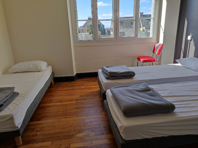 Gîte d'étape en gestion libre résolument "Vintage" (mobilier récup d'un bar américain) entièrement rénové. Cinq chambres : une chambre homologuée pour personne handicapée (avec un lit accompagnant). Quatre chambres de 2 ou 3 personnes avec lits 90.