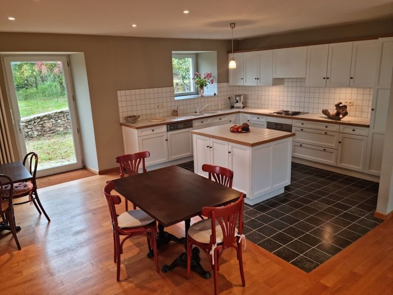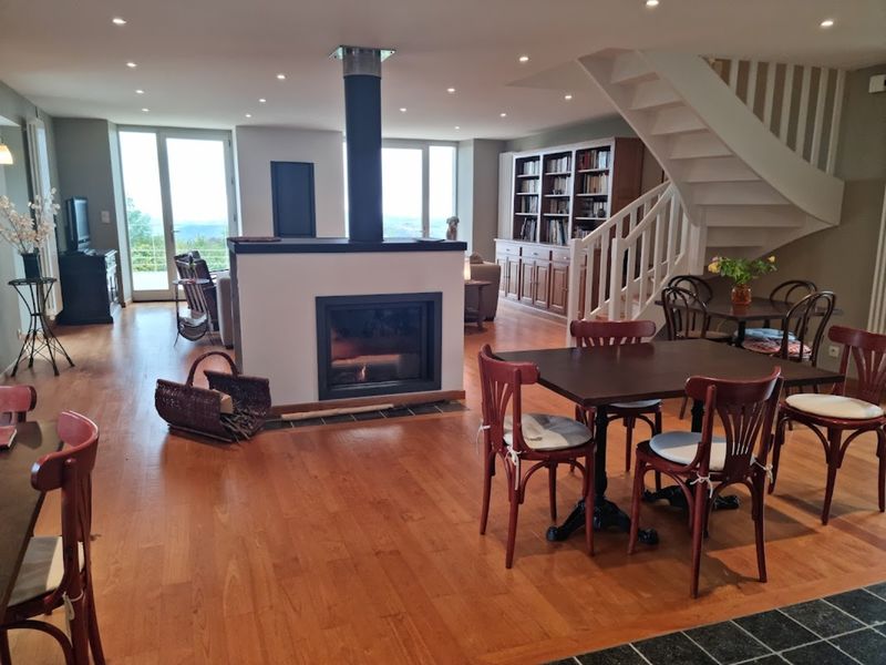 Maison de charme en pleine nature avec vue dominante à 180 degrés. Espace de vue lumineux de 180 m2 (cuisine – salon – salle à manger). 5 chambres à l’étage. 3 salles de bains.
