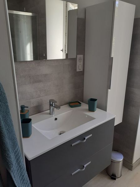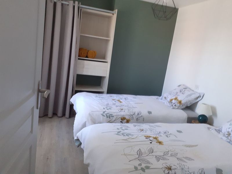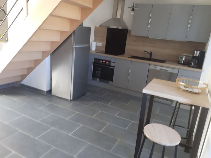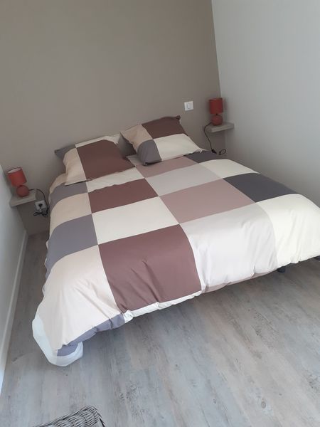Rez-de-chaussée : belle pièce à vivre avec canapé-lit (1 pers), poêle à bois, tv, espace cuisine entièrement équipé, salle d'eau, buanderie, wc. A l'étage : 1 chambre (1 lit 2 pers), 1 chambre (2 lits 1 pers), salle d'eau et wc, chauffage électrique. A l'extérieur jardin privé ombragé aménagé avec terrasse, salon de jardin avec bains de soleil, barbecue. Parking privé et abri de jardin sécurisé pour vélos ou autres. Proximité des commerces, du complexe sportif (tennis, skate-park, city-park), du centre aquatique, départ de la Voie verte à 1 km.
