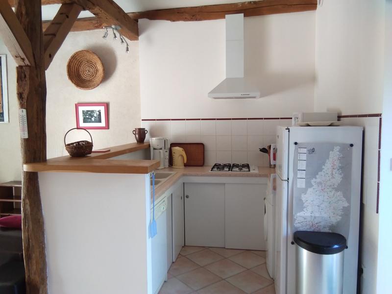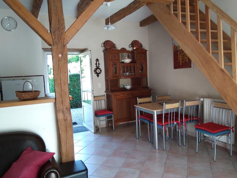 Le gîte comprend en RDC un séjour, espace repas et une cuisine américaine très bien équipée : LL, LV, frig-congélateur, four, micro ondes,vaisselle et ustensiles de cuisine de bonne qualité. Au 1er étage, une chambre avec lit 2 personnes et une mezzanine avec 2 lits 90, et une salle d'eau wc.