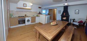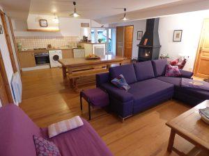 La grange est conçue pour les grandes tribus. Il présente une vue sur le jardin et la vallée. Le grand salon ouvert sur la cuisine et le coin cheminée vous permettra de passer des moments conviviaux en famille ou entre amis en toute saison.