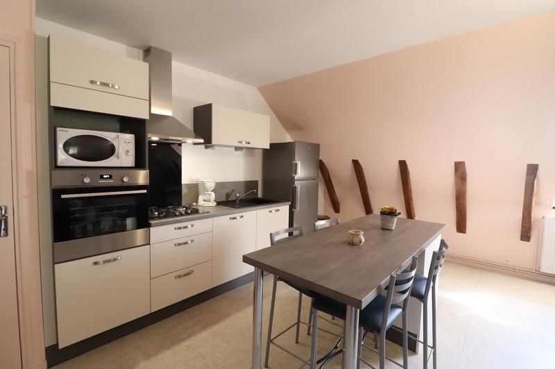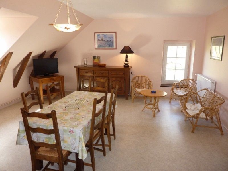 Séjour, coin-cuisine. 2 chambres avec 1 lit 2 pers. 1 chambre avec 2 lits 1 pers. + 1 lit d'appoint 1 pers. Gite de France n°663.