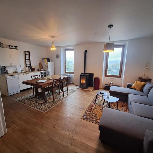 Ce gîte peut accueillir jusqu’à 4 personnes et se compose d’une salle de séjour avec coin salon (le canapé peut être converti en lit double), Wi-Fi gratuit, Smart TV, poêle à pellets, coin repas et une cuisine généreusement équipée avec tous les équipements tels que lave-vaisselle, four et micro-ondes. Un grand réfrigérateur-congélateur est également disponible.