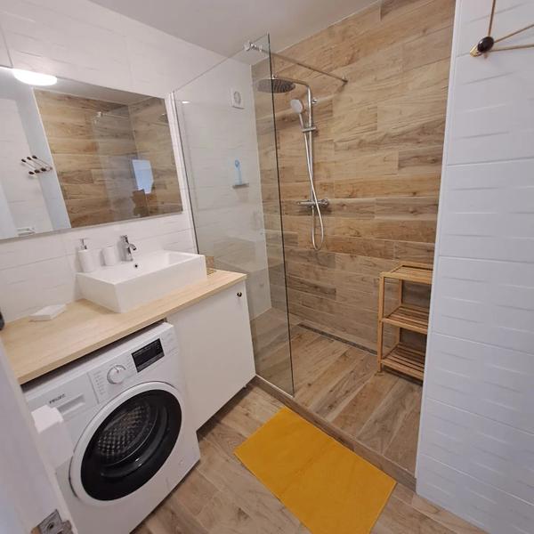 Le gîte dispose de 2 chambres spacieuses, les draps et les serviettes sont inclus. La belle salle de bains est équipée d’une douche à l’italienne/pluie et une machine à laver. Une pièce avec des toilettes séparées complète ce gîte.