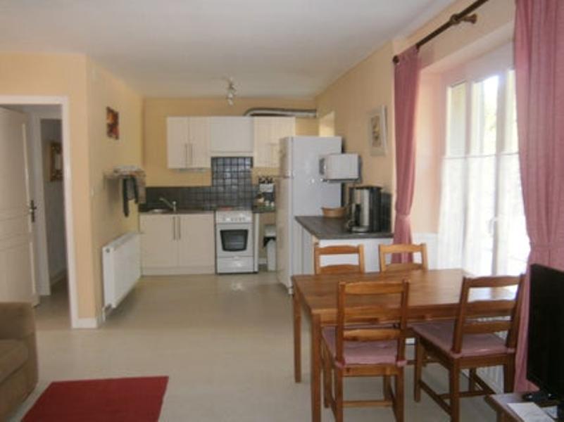 Appartement au rez de chaussée d'une maison indépendante composé 2 chambres, une avec un grand lit et une avec 1 lit simple et 2 lits 90 superposés. Grande pièce ouverte avec un coin cuisine entièrement équipé. Salle d'eau et WC indépendants.