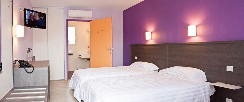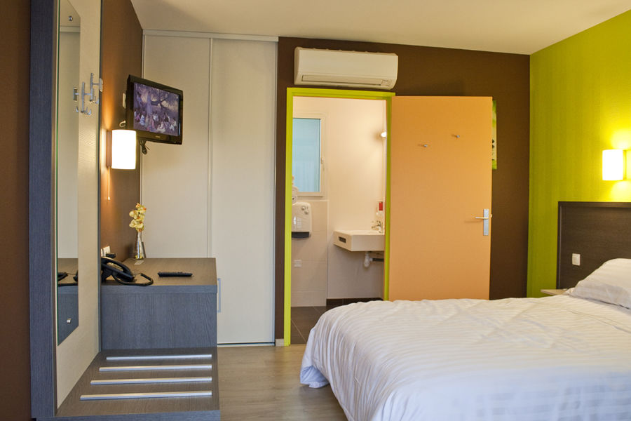 Petites maisons de 3 chambres chacune avec parking privé. Douche et WC dans les chambres. Salle d’eau et WC séparés – TV/ Canal +, penderie, bureau, accès Internet dans l'hôtel. Wifi dans toutes les chambres.