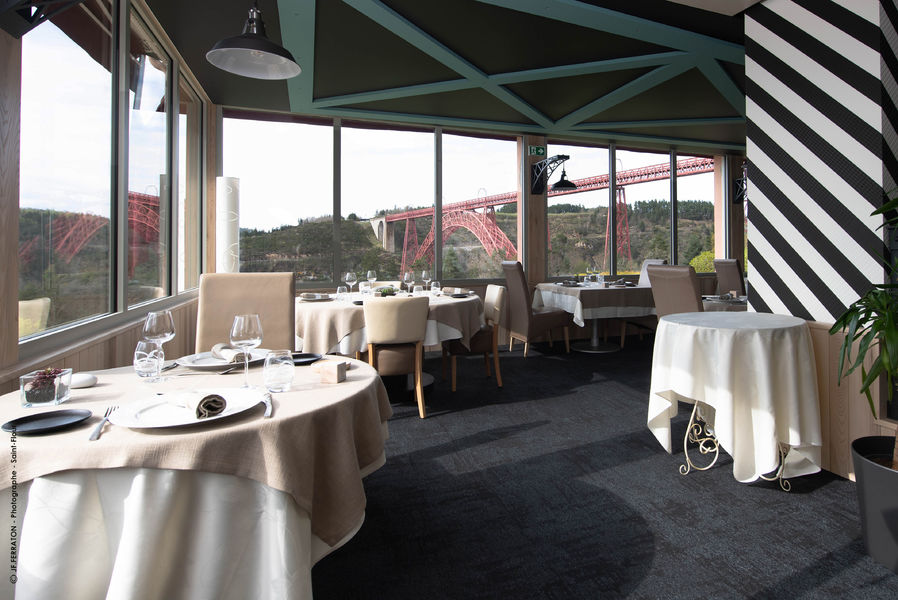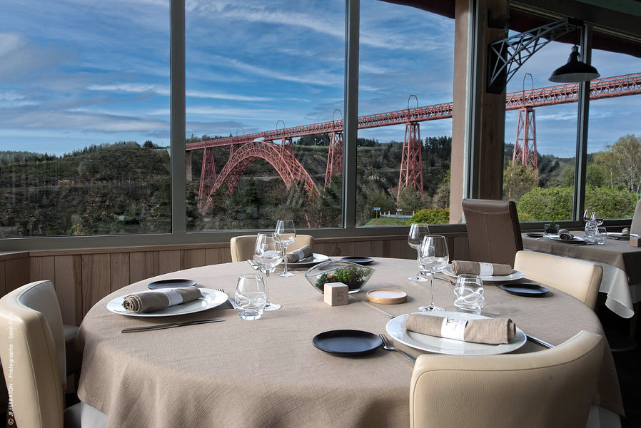 Situé face au viaduc de Garabit, classé Monument Historique en 2015, l’hôtel qui surplombe la vallée de la Truyère et le lac de Garabit-Grandval, offre une des plus belles vues sur le viaduc d’Eiffel illuminé en soirée.
