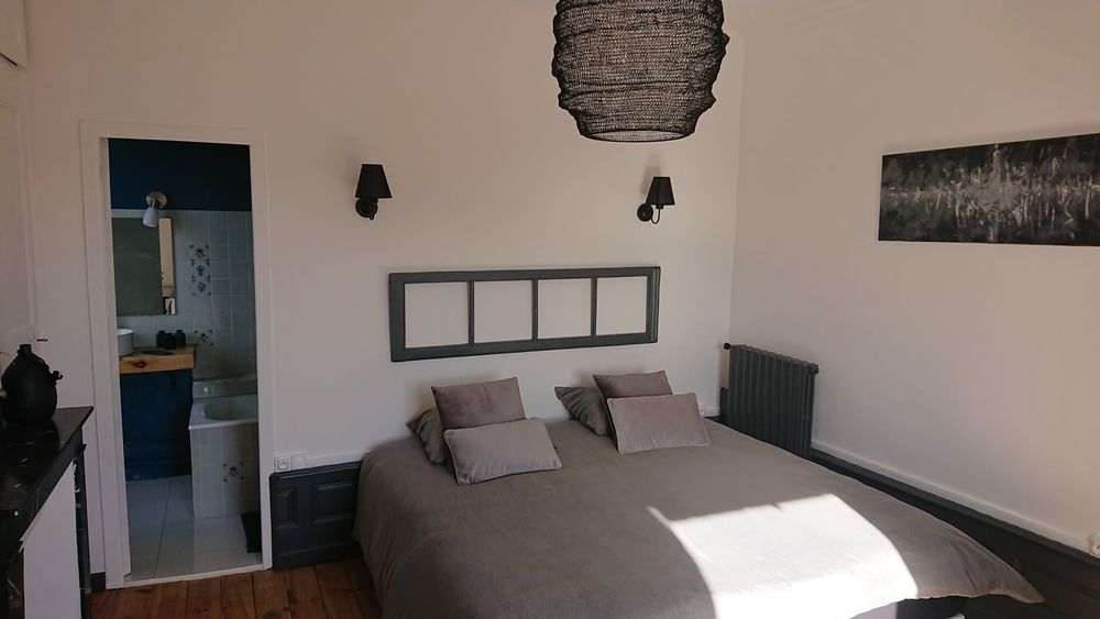 >"Chambre Gabriel", pour deux personnes avec un couchage en 180×200 (ou 2 lits de 90×200), salle d'eau et WC privatifs.