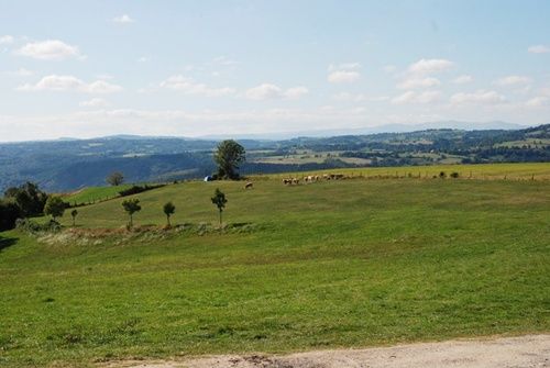 5 emplacements du 15 juin au 30 septembre, sur un pré avec une vue imprenable sur les Monts du Cantal, à Fridefont.