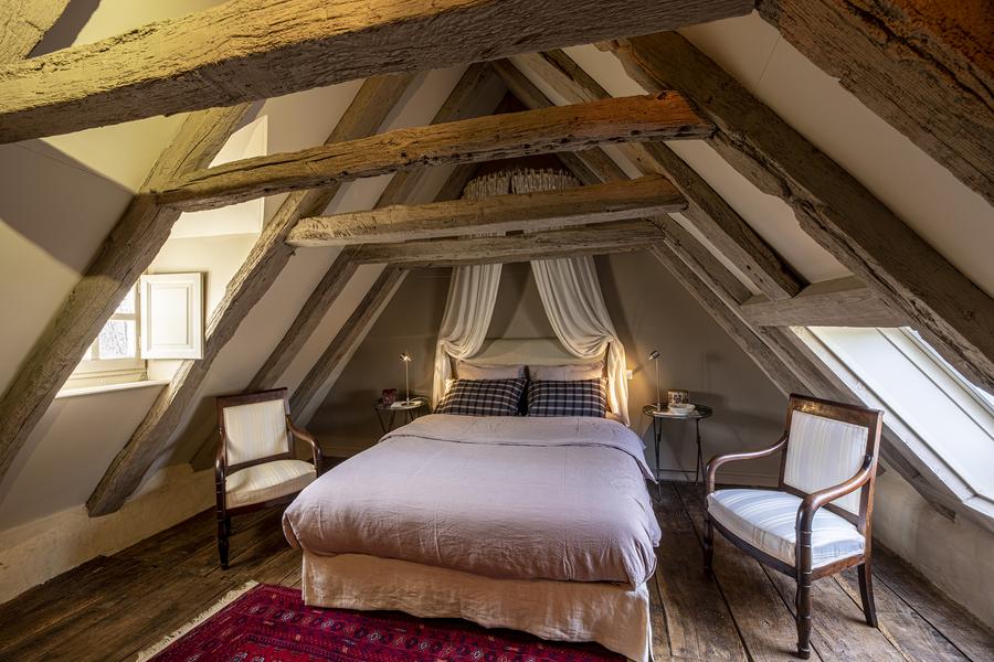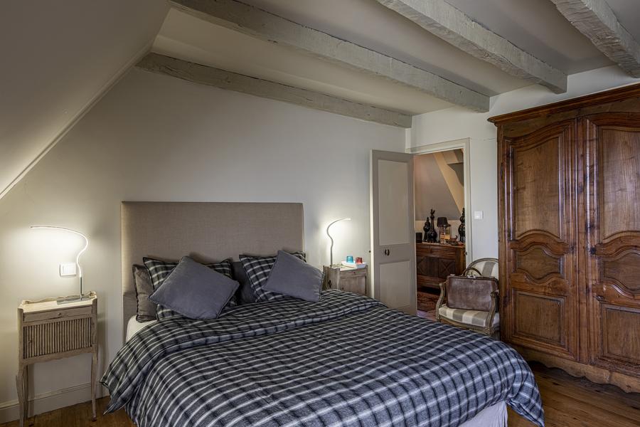 Chambre "Marronnier – Frêne" (suite 3 pers) : chambre (1 lit 160), coin lecture, TV, chambre (lit 115cm) avec salle d'eau et WC privatif à l’extérieur de la chambre. Petits-déjeuners à base de produits maison essentiellement bio (confitures, pâtisseries, pain…) : le charme intemporel et raffiné d'une authentique maison de famille.