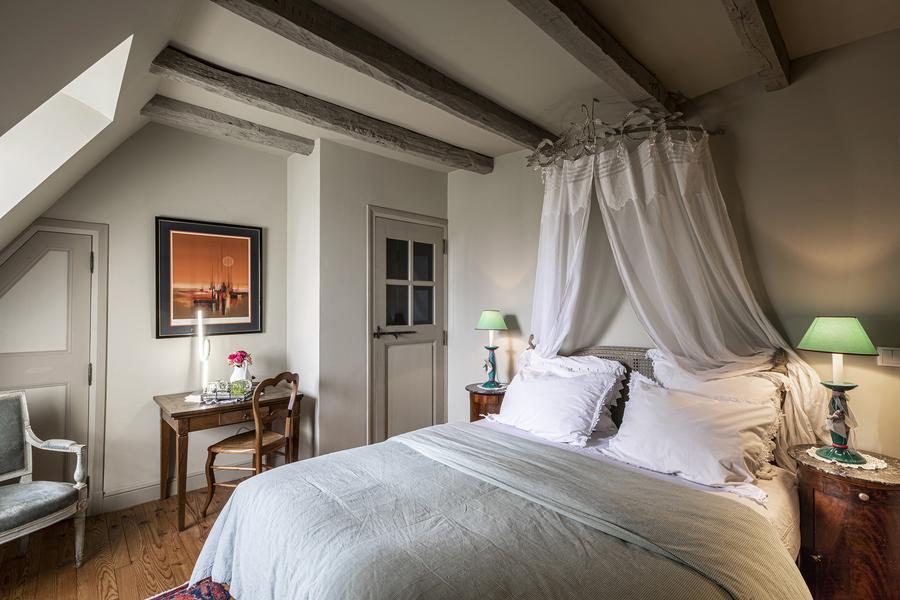 Chambre "Armoise" (à l'étage) avec 1 lit 160, salle de bain avec baignoire ouverte sur la chambre, WC séparé.